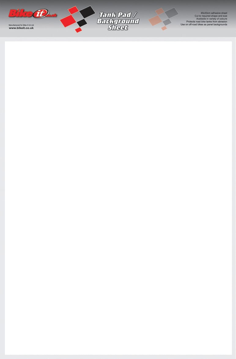 The Bike It "Cut Your Own" Tank Pad is a versatile adhesive protector sheet measuring 45cm by 33cm, designed to shield your motorcycle's tank, bodywork, and framework from abrasion. Its customisable nature allows you to cut it to the required shape and size, ensuring a perfect fit for your bike. Ideal for both road and off-road motorcycles, it can also serve as panel backgrounds on off-road bikes. Easy to apply, this tank pad enhances the durability and aesthetic appeal of your motorcycle.