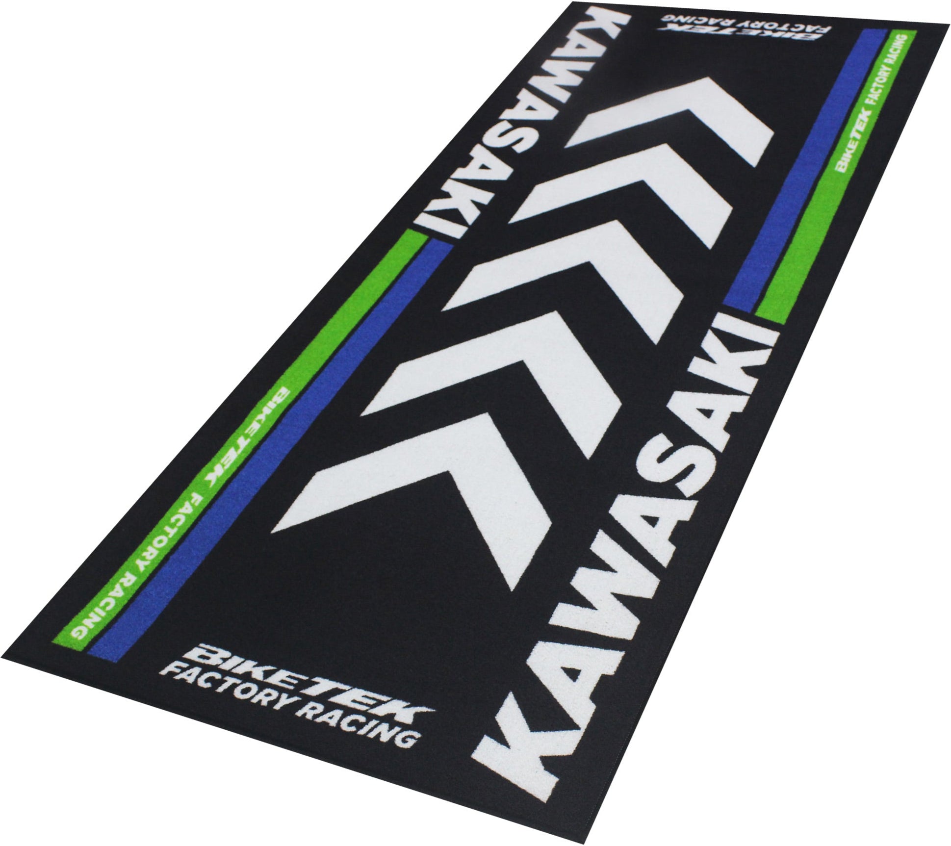 The BikeTek Series 4 Garage Mat is an essential accessory for any motorcycle enthusiast. Measuring 190x80cm, this large mat not only enhances the look of your garage but also serves a practical purpose. Constructed from durable nylon fibre, it is designed to withstand the rigours of garage life, being resistant to both oil and water. Its non-slip backing ensures it stays in place, providing a safe working environment by preventing slips and catching spills during bike maintenance or repairs. Easy to clean and compliant with FIM regulations for fluid absorption, it is suitable for both home and track use, making it an ideal choice for protecting your space while showing off some style.
